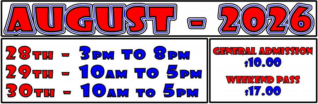 - Sunday, August 30th, 2026: 10:00 AM – 5:00 PM